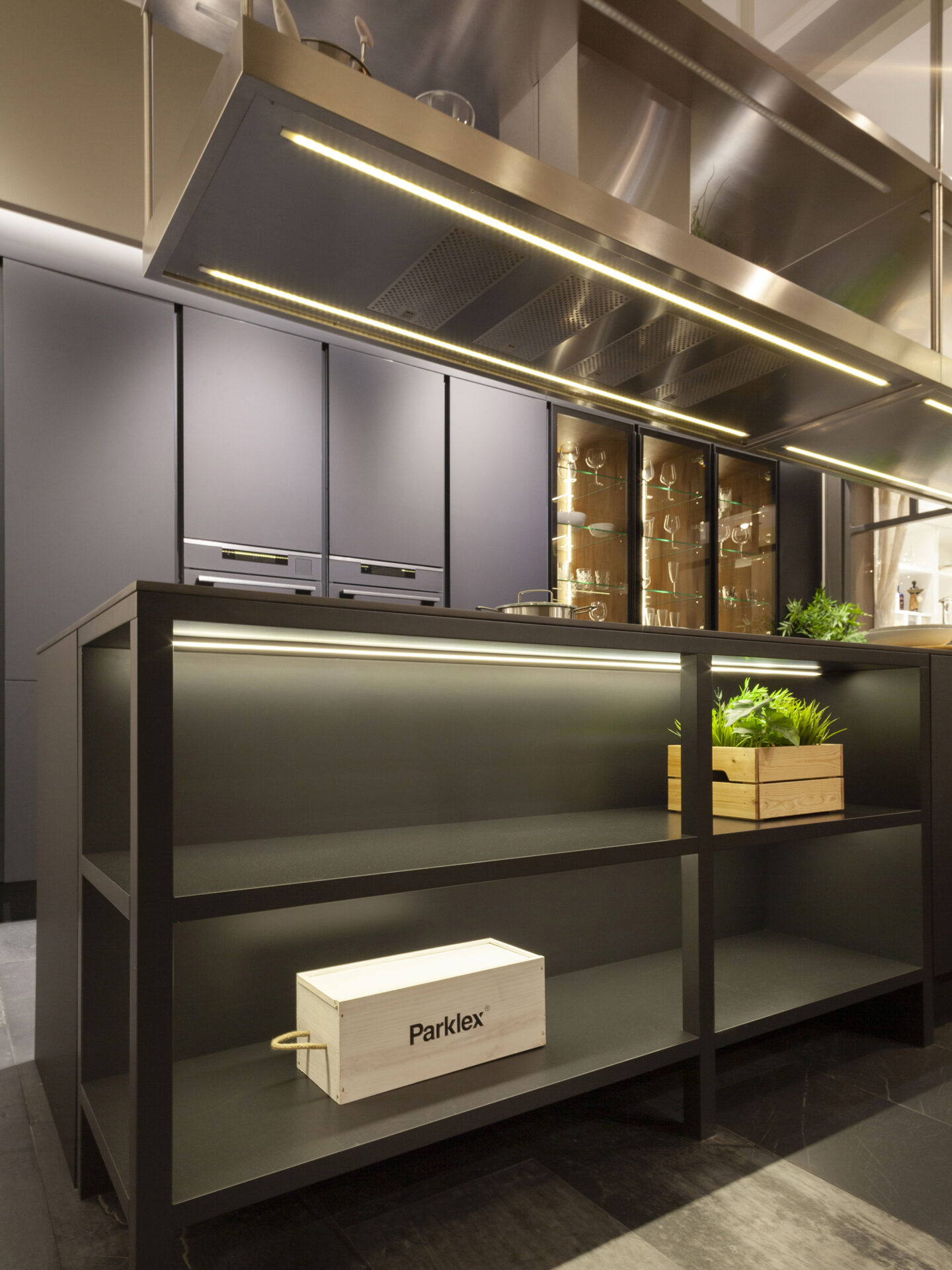 Una apuesta por el estilo industrial que combina la elegancia e intensidad del negro con la calidez y naturalidad del nogal.